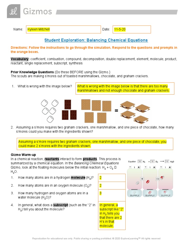 Student Exploration Balancing Chemical Equations Gizmo Answer Key Pdf - Student Exploration Balancing Chemical Equations Exploration Balancing Chemical Equations Vocabulary Coefficient Combination Compound Decomposition Double Replacement Element Pdf Document - Explorelearning ® is a charlottesville, va based company that develops online solutions to improve student learning in math and science.. 110 avon street, charlottesville, va 22902, usa Entdecke rezepte, einrichtungsideen, stilinterpretationen und andere ideen zum ausprobieren. We would like to show you a description here but the site won't allow us. Gizmo worksheet answers | kids activities : This might seem impossible but with our highly skilled professional writers all your custom essays, book reviews, research papers and other custom tasks you order with us will be of high quality.